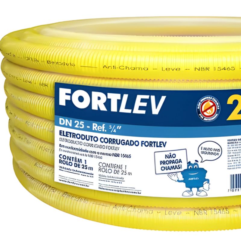 O conduíte flexível Fortlev 3/4” é a solução ideal para a proteção e organização de fios e cabos em instalações elétricas residenciais, comerciais e prediais. Fabricado em PVC de alta qualidade, oferece excelente flexibilidade, facilitando a passagem dos cabos mesmo em trajetos com curvas e desvios, sem comprometer a resistência mecânica. Na cor amarela, segue as normas de identificação para eletrodutos corrugados, garantindo segurança, padronização e confiabilidade à instalação. Fornecido em rolo com 25 metros, é indicado para aplicação embutida em paredes, lajes e pisos, proporcionando maior rendimento na obra, durabilidade e proteção eficiente da fiação elétrica.