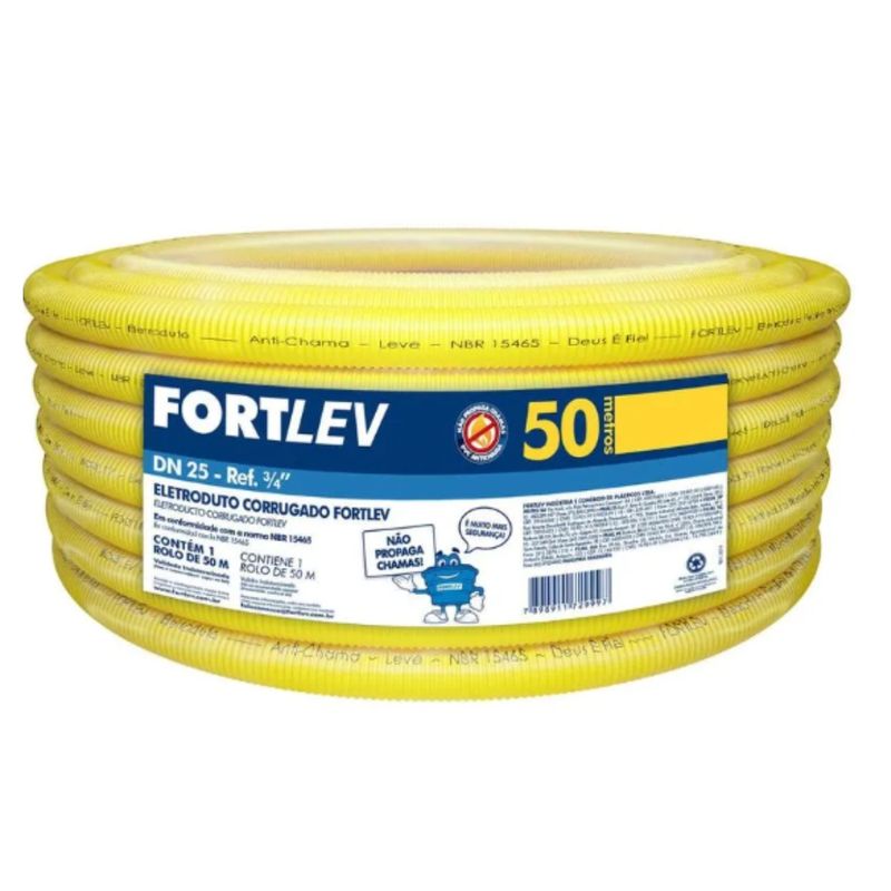 O conduíte flexível Fortlev 3/4” é ideal para a proteção e organização de fios e cabos em instalações elétricas residenciais, comerciais e prediais. Fabricado em PVC de alta qualidade, proporciona excelente flexibilidade, facilitando a passagem dos cabos mesmo em percursos com curvas e desvios, sem perder resistência mecânica. Sua cor amarela segue as normas de identificação para eletrodutos corrugados, garantindo segurança, padronização e confiabilidade à instalação. Fornecido em rolo com 50 metros, é indicado para aplicações embutidas em paredes, lajes e pisos, oferecendo maior rendimento na obra, durabilidade e proteção eficiente da fiação elétrica.