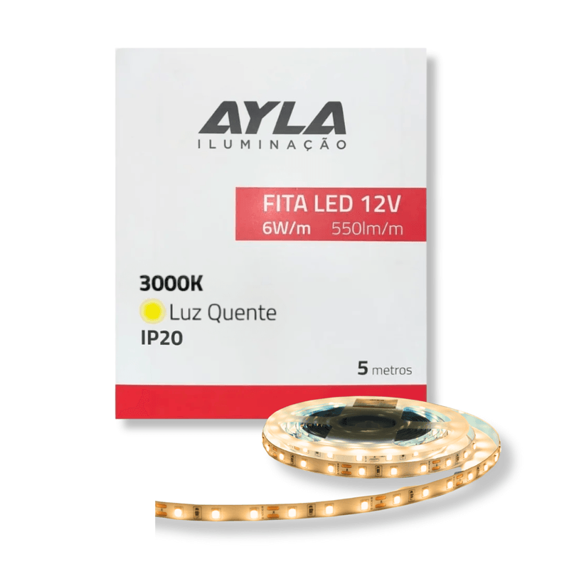 A Fita LED Ayla, com 6W por metro, é uma escolha versátil para iluminação interna, operando em 12V e oferecendo 550 lúmens por metro. Com classificação IP20, ideal para uso em ambientes internos, este rolo de 5 metros proporciona praticidade e flexibilidade em diversas aplicações. Disponível em três temperaturas de cores distintas: 2700K - Branco Quente, 3000K - Branco Quente, 4000K - Neutro. A Fita LED Ayla é uma solução eficiente para criar ambientes internos aconchegantes e personalizados, proporcionando uma iluminação de qualidade. Transforme seus espaços com praticidade e estilo.