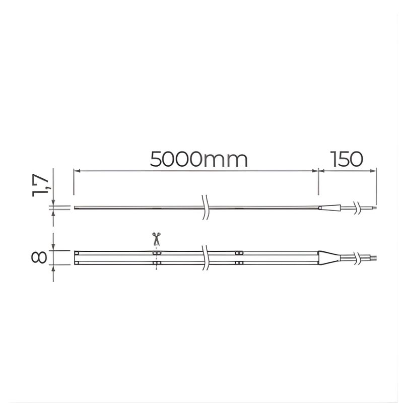 Com 16W por metro e fluxo luminoso de aproximadamente 1200 lm/m, esta fita oferece iluminação contínua e uniforme ao longo de seus 5 metros, criando efeitos decorativos, destacando detalhes arquitetônicos e proporcionando conforto visual.