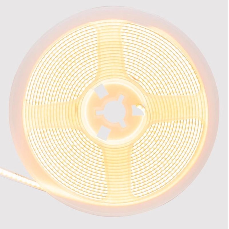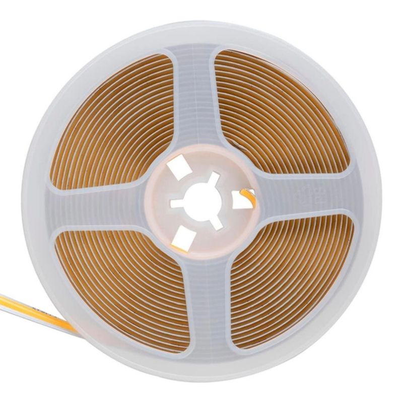 Com potência de 8 W por metro e tecnologia COB, esta fita entrega até aproximadamente 600 lm por metro, oferecendo luz contínua, sem pontos de LED visíveis. Seu design flexível e contínuo de 5 metros com marcações de corte a cada 5 cm permite adequação fácil em sancas, nichos, painéis e outros detalhes arquitetônicos.