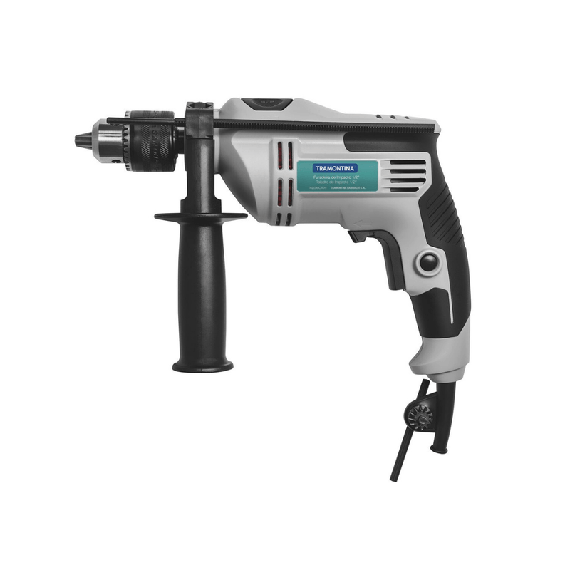 Furadeira de impacto Tramontina 500W, tensão 127V, indicada para perfurações em madeira, metal e alvenaria. Possui sistema de reversão de rotação, permitindo também o uso como parafusadeira. Design compacto com empunhadura ergonômica para maior controle e segurança. Ideal para uso doméstico e profissional leve. Mandril de 1/2 proporciona versatilidade para diferentes tipos de brocas. Excelente custo-benefício para o dia a dia.