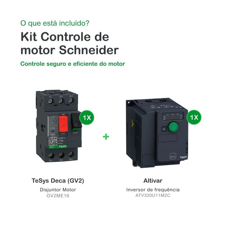 Kit Inversor de Frequência ATV320U11M2C + Disjuntor Motor GV2ME16 Schneider