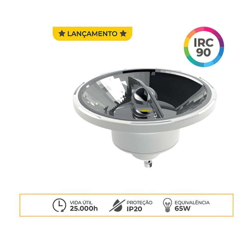 A Lâmpada LED AR111 12W Luminatti oferece iluminação direcionada com ângulo de 24°, ideal para destaque de ambientes e objetos. Com luz quente 3000K, proporciona conforto visual, alta eficiência e baixo consumo de energia.