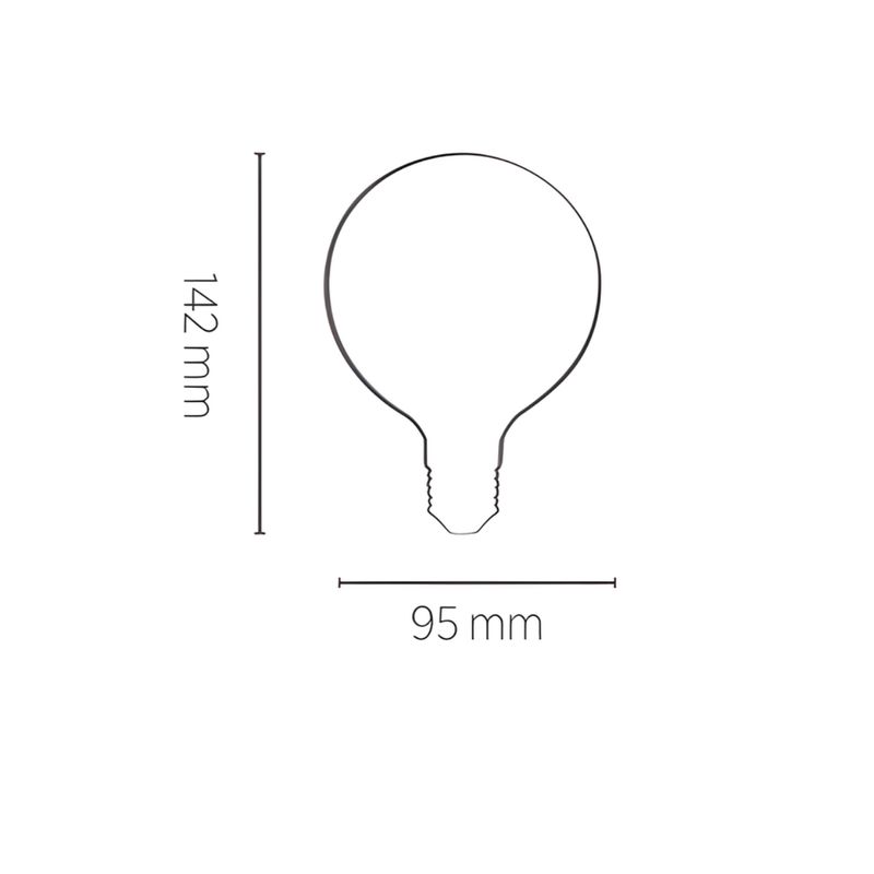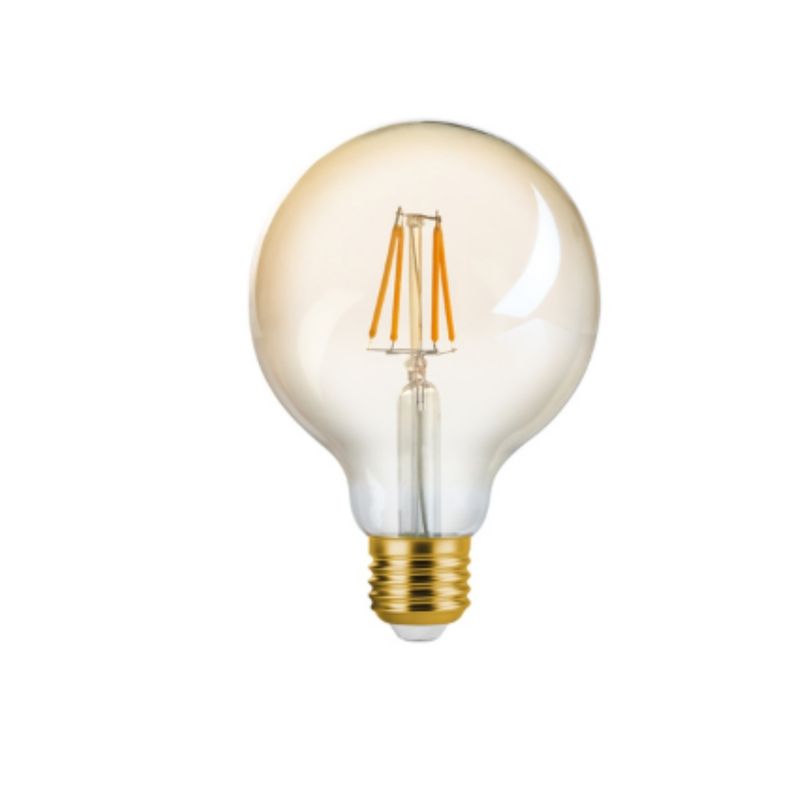 Lâmpada de LED, modelo G95 Filamento, estilo VINTAGE, potência 4W, fluxo luminoso 300lm, temperatura de cor 2200K - Luz amarela, encaixa no soquete E27, índice de proteção IP65 e material vidro âmbar.