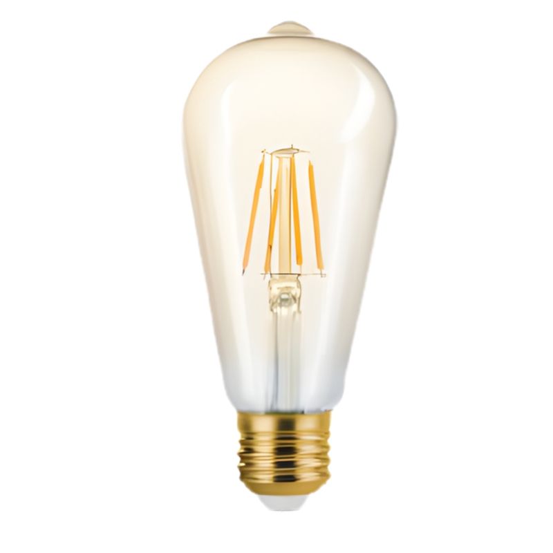 Lâmpada de LED, modelo ST64 Filamento, estilo VINTAGE, potência 4W, fluxo luminoso 300lm, temperatura de cor 2200K - Luz amarela, encaixa no soquete E27, índice de proteção IP65 e material vidro âmbar.