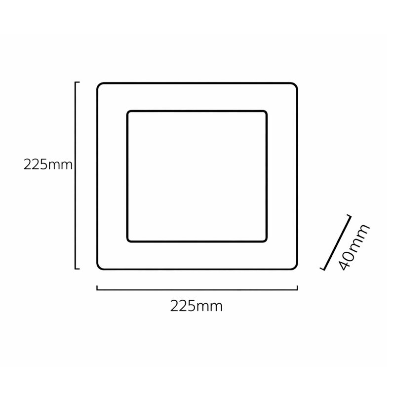 Painel de LED De Embutir Quadrada Recuada Branco de 22,5x22,5cm, potência 20W, ângulo 120°, fluxo luminoso 1220lm, índice de proteção IP20. Medida do nicho - 20,5x20,5x4,3 cm.
