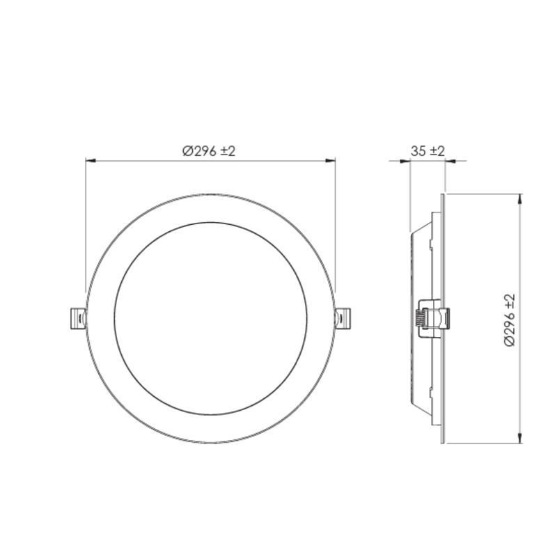 Painel de LED De Embutir Redonda Jet Black diâmetro de 30cm, potência 25W, ângulo 120°, fluxo luminoso 1850lm, índice de proteção IP20. Medida do nicho - Ø27,5X3,1 cm.