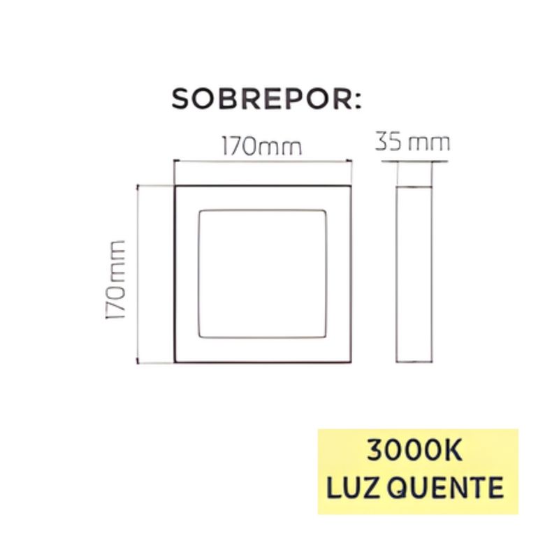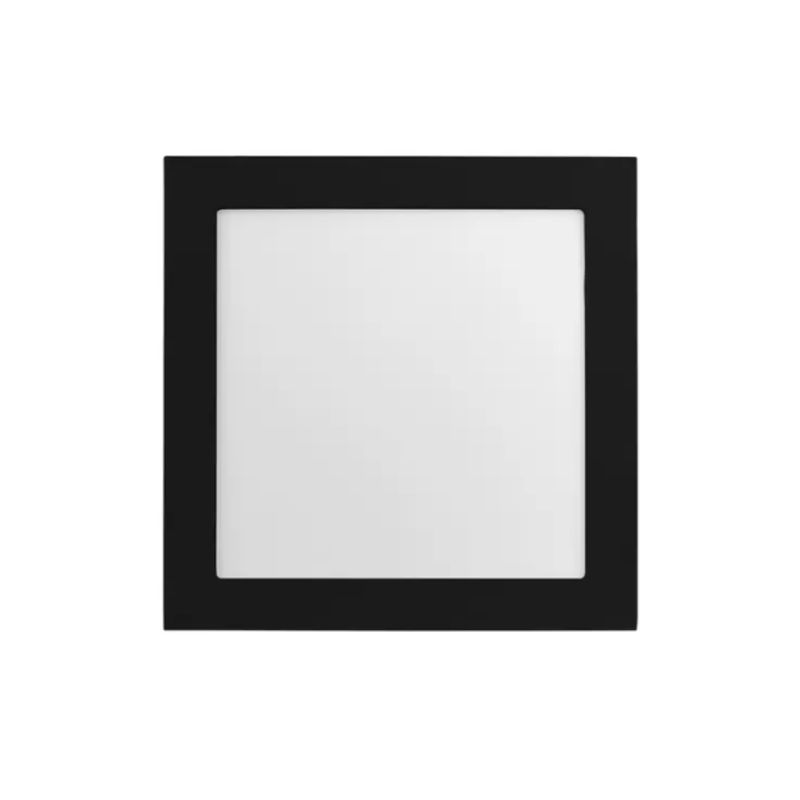 Painel de LED Quadrada de Sobrepor Preto de 17x17cm, Preto - Jet Black, potência 12W, ângulo 120°, fluxo luminoso 900lm , temperatura de cor 4000K - Luz Neutra, índice de proteção IP20. Altura 3,5 cm.