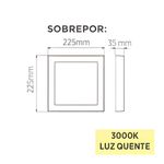 Painel de LED Quadrada de Sobrepor Preto de 22,5x22,5cm, Preto - Jet Black, potência 20W, ângulo 120°, fluxo luminoso 1220lm, índice de proteção IP20. Altura 3,5 cm.
